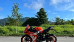 緑の中を走り抜けてく…のは 真っ赤なポルシェより オレンジ?バイク?️ …の方が真っ先に見つかると思う