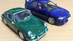 ポルシェ AmazonからMINI GTのPorsche911(901)の1963年モデルのミニカーが届きました。結構作りが良いのと小さいので驚きました。 356は野暮ったく911はこの後、年を追うごとにどんどん肥大化するので、これ一番好き。(実車は買えないw) 比較用に同じスケール(1/64)のランエボIVを置いてみました。