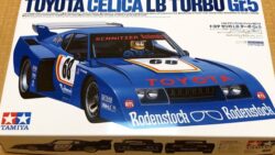 ポルシェ タミヤ1/20セリカLBターボ再販版をGET。 箱を開けるとまず目に入る仕切り紙が昔っぽくて嬉しい☺️ タイヤは「935F/935R」の刻印があり、どうやらポルシェ935ターボ再販の新規品でサイドウォールにDUNLOP/GOODYEARの刻印がないのか・・
