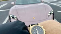ポルシェ 黒金時計×ピンクポルシェ?